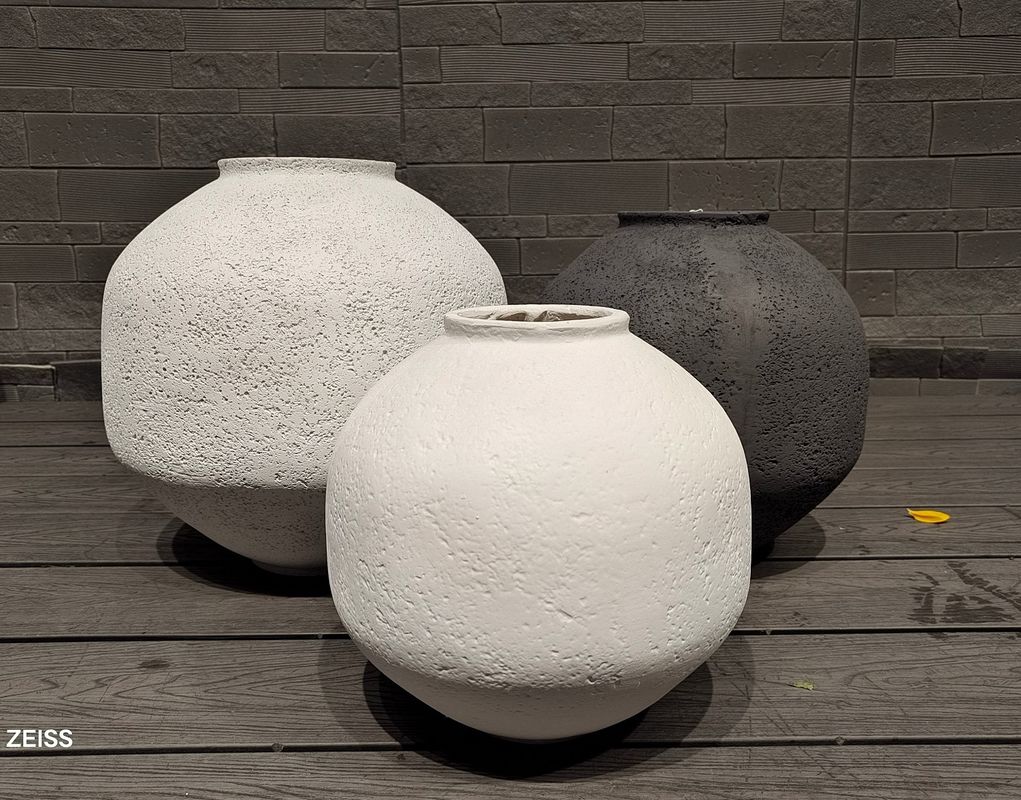 สร้างจากผสมผสานของดินและเส้นใย เครื่องปลูกไม้เหล่านี้แสดงให้เห็นถึงเนื้อเยื่อที่โดดเด่นบนพื้นผิว เพิ่มความน่าสนใจทางสายตาทําให้มันโดดเด่นเป็นองค์ประกอบตกแต่งที่มีสไตล์.